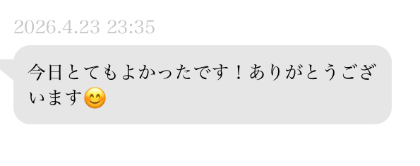 帰宅してからも、嬉しいメッセージ有難うございました😍 次回も沢山、気持ち良くしてあげるね😘お誘いお待ちしております🙇♀️