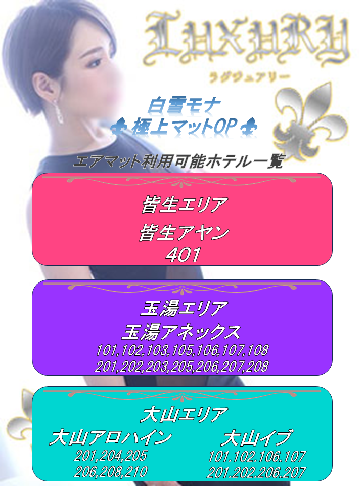 - 16:30 玉湯で初めましてでした。可愛くて、スタイル抜群。理想的な形の良い胸に見惚れました。密着イチャイチャプレイが斬新でファンになりました。又、お願いします。🙇